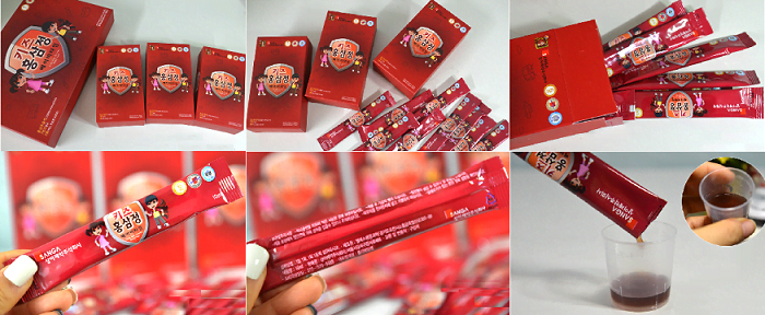 Nước hồng sâm cho bé thương hiệu Sanga dạng từng gói nhỏ thật tiện lợi và dễ uống, bé uống bổ sung mỗi ngày.